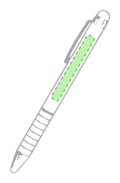 Bolígrafo puntero de mecanismo giratorio con cuerpo en aluminio de suave acabado metalizado en vivos colores. Accesorios y anillas en color plateado. Original empuñadura anillada y tinta azul.