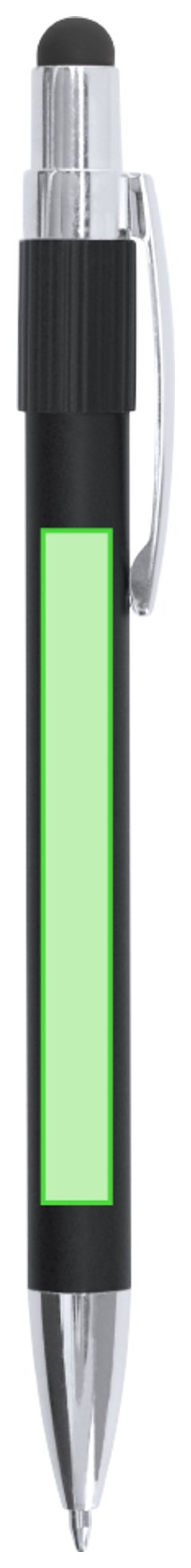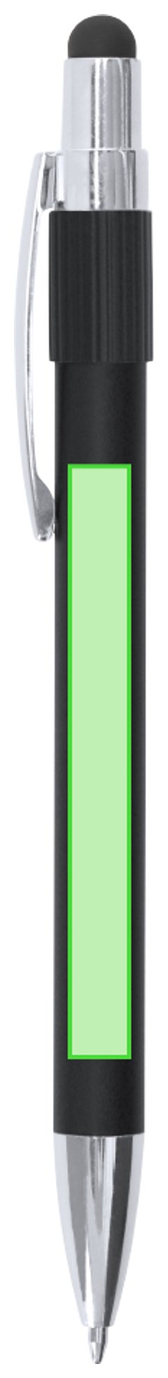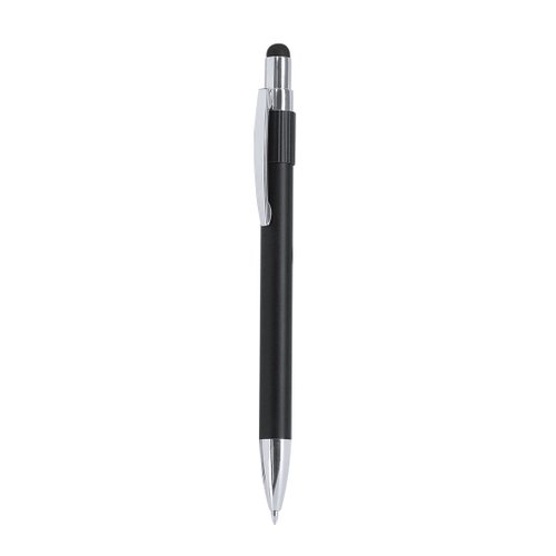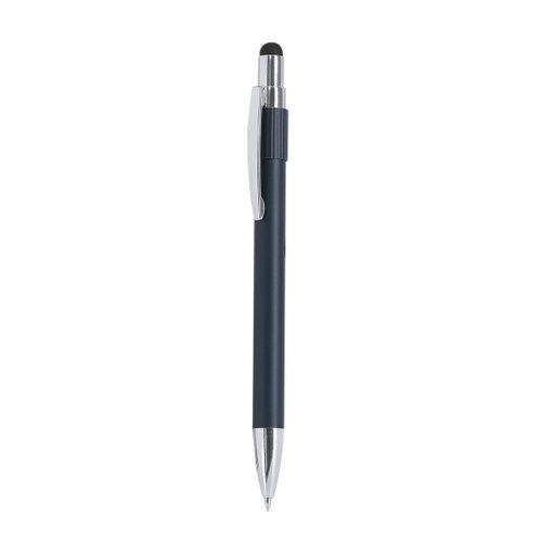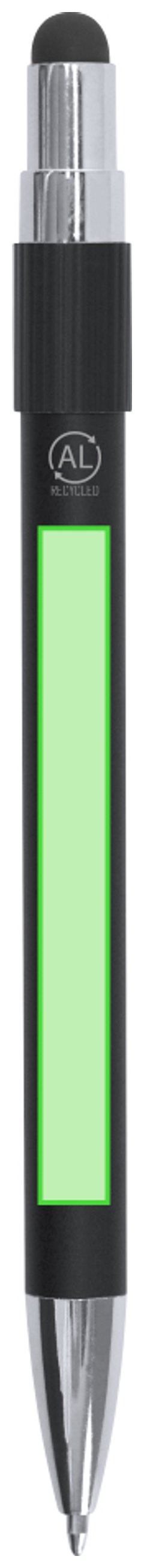 Elegante bolígrafo puntero de Aluminio Reciclado. Con mecanismo pulsador de acabado mate y puntero en la parte superior en negro, en tinta azul. Clip y accesorios en acabado cromado. Incluye sistema spinner antiestrés. Con logo de Aluminio Reciclado grabado.