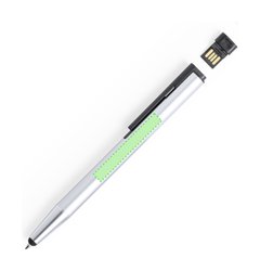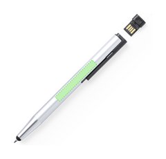 Bolígrafo puntero USB fabricado en resistente aluminio de acabado brillo. Con memoria USB de 16GB de capacidad integrada en la parte superior y clip en negro. De mecanismo pulsador, con cartucho jumbo y en tinta azul. Presentado en caja individual negra.