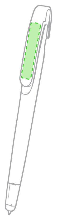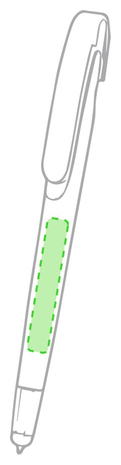 Bolígrafo puntero de mecanismo pulsador con cuerpo de acabado brillante en color blanco y accesorios en variada gama de vivos colores. Con clip maxi y tinta azul.