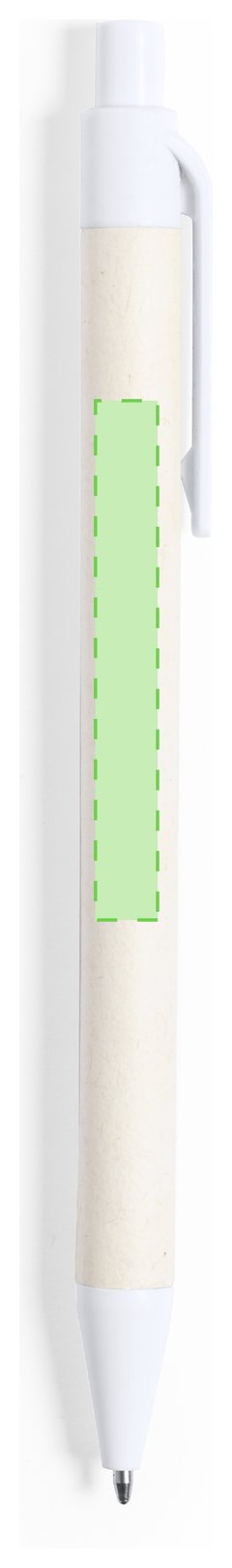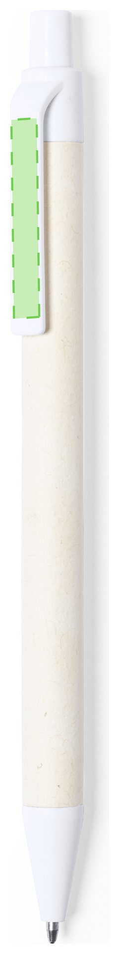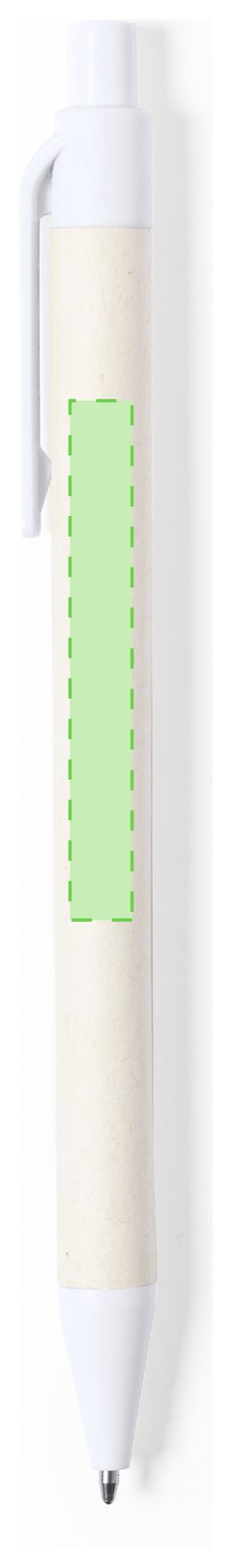 Bolígrafo de línea nature, con cuerpo fabricado con cartones de leche reciclados y detalles en color blanco. De mecanismo pulsador y en tinta azul, con distintivo cartón de leche reciclado en el cuerpo. Los cartones de leche se componen en su mayor parte de cartón y aluminio. Durante su proceso de reciclado, se separan los distintos materiales del envase para su reutilización y nuevo uso, contribuyendo así a recorrer el camino infinito de la economía circular. Este material se caracteriza por su alto grado de reciclabilidad, así como por su ligereza y resistencia.