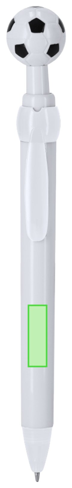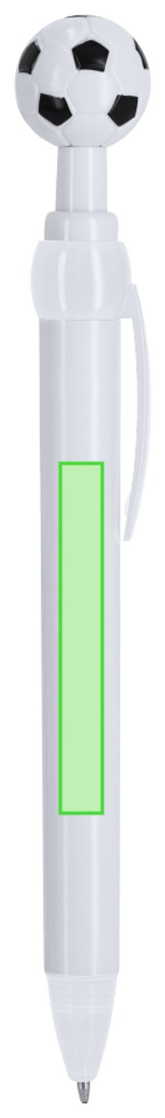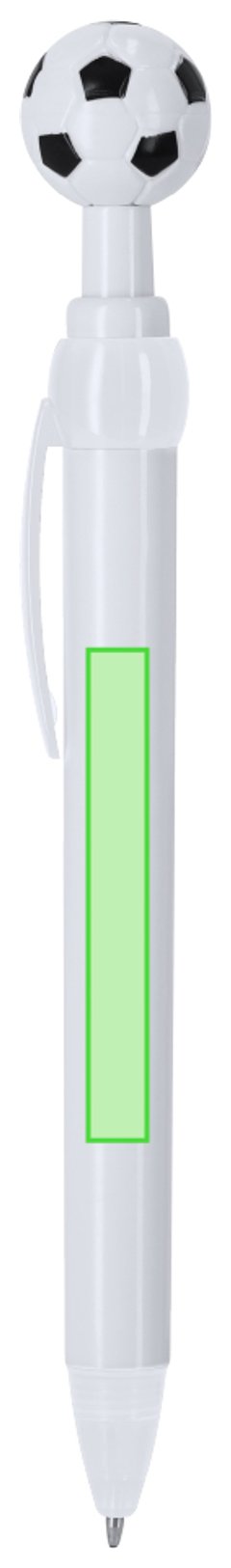 Bolígrafo de mecanismo pulsador fabricado en ABS. Pulsador con diseño de balón de futbol y cuerpo acabado brillante. En tinta azul.