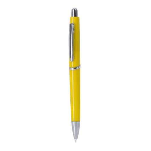 Bolígrafo de mecanismo pulsador en resistente ABS. Fabricado en elegante diseño con accesorio cromado, con pulsador, clip y punta en combinación. En tinta negra.