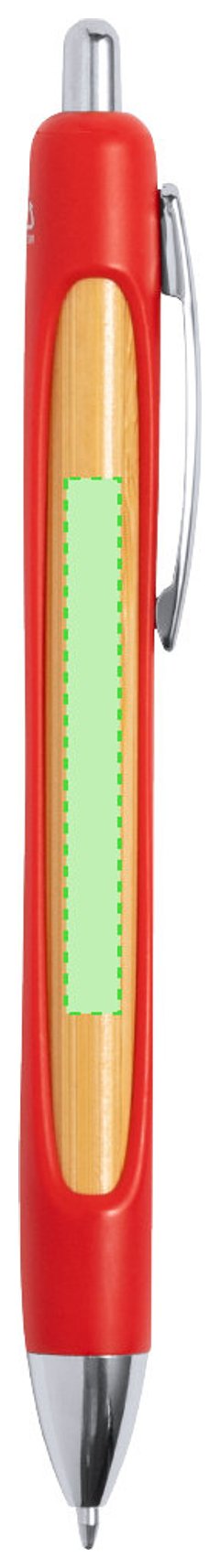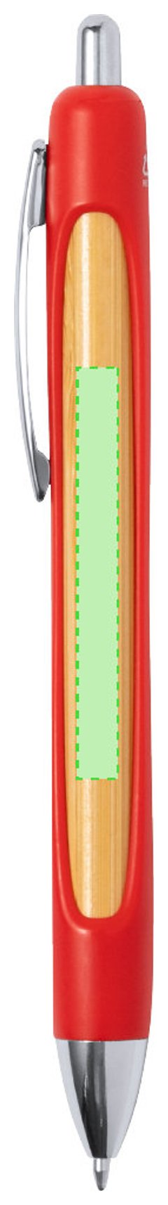 Elegante bolígrafo pulsador de RABS y bambú. Con un diseño logotipo que incorpora la combinación de bambú y RABS en una variedad de colores vibrantes a lo largo de la caña. De mecanismo pulsador y tinta azul con botón, clip y punta cromados. Presentado individualmente en bolsa reciclada. El RABS es un plástico altamente reciclable de gran resistencia y con multitud de aplicaciones que lo convierten en una solución eco-friendly. Con certificación RCS, que garantiza el origen reciclado del mismo y con logo RABS grabado.