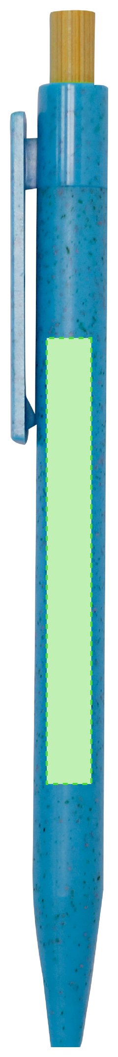 Bolígrafo fabricado con fibra de caña de trigo. Con cuerpo y clip a juego, de mecanismo pulsador fabricado en bambú y en tinta azul. Con distinguido logo de Caña de Trigo marcado en la caña. La Caña de Trigo fomenta la utilización de materias primas naturales, reduciendo así las emisiones contaminantes.