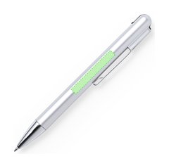 Bolígrafo USB fabricado en resistente ABS de acabado metalizado brillante. Con memoria USB de 16GB de capacidad integrada en la parte superior y clip metálico. De mecanismo giratorio, con cartucho jumbo y en tinta azul. Presentado en caja individual negra.