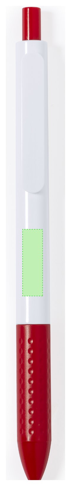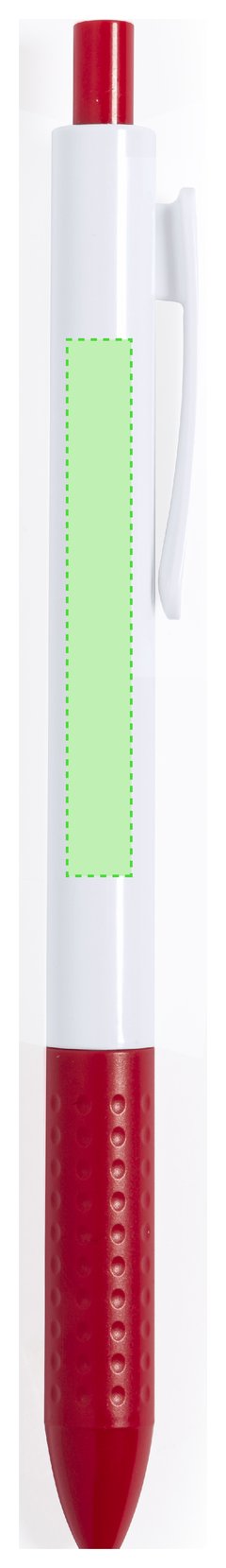 Bolígrafo de mecanismo pulsador en resistente ABS. Fabricado en elegante combinación de caña y clip de tono blanco. Con pulsador y empuñadura disponibles en una vibrante variedad de colores. En tinta azul.