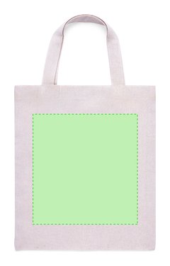 Bolsa fabricada en algodón 100%, de acabado natural y en 120g/m2. De acabado cosido y con asas cortas reforzadas (30 x 2,5cm). Resistencia hasta 5 kg de peso.