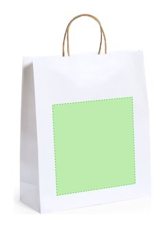 Bolsa de línea nature, fabricada en papel reciclado acabado en blanco de 100g/m2, con asas cortas reforzadas en tono natural y fuelle. Resistencia hasta 8 kg de peso.