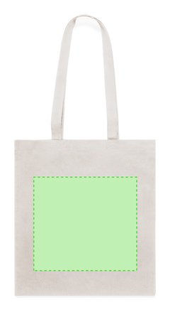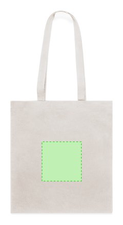 Bolsa fabricada en algodón 100%, de acabado natural y en 140g/m2. De acabado cosido, con fuelle en base y asas largas reforzadas (70 x 2,5 cm). Resistencia hasta 6 kg de peso.