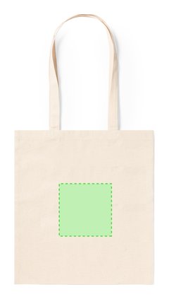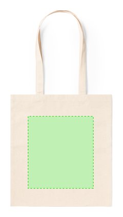 Bolsa fabricada en algodón 100%, de acabado natural y en gramaje extra de 300g/m2. De acabado cosido y asas largas reforzadas (70 x 2,5 cm). Resistencia hasta 10 kg de peso.