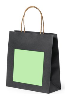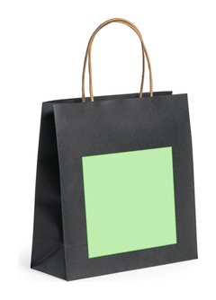 Bolsa de línea nature, fabricada en papel reciclado acabado en negro de 100g/m2, con asas cortas reforzadas en tono natural y fuelle. Resistencia hasta 6 kg de peso.