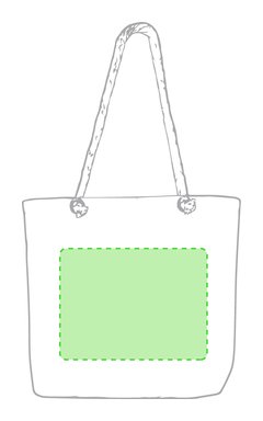 Bolsa en poliéster de acabado bicolor natural. Con asas largas para hombro reforzadas con argollas metálicas y fuelle. De acabado cosido y resistencia hasta 9kg de peso.