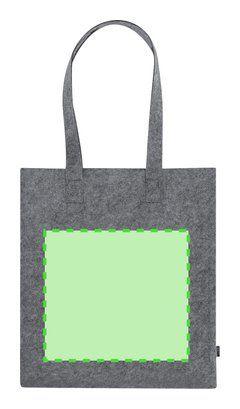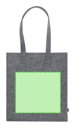 Bolsa fabricada en fieltro RPET reciclado. Con asas reforzadas largas. Resistencia hasta 6kg. Incluye distintivo RPET en etiqueta exterior.El material RPET se elabora a partir de plástico reciclado, para así fomentar la reutilización de residuos plásticos y ayudar a la sostenibilidad del planeta.