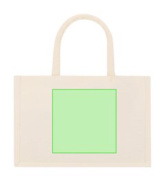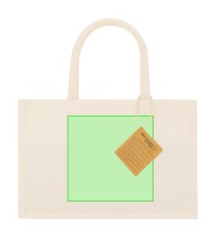 Bolsa de Canvas reciclado de 220g/m2. En color natural, con resistente acabado cosido y asas redondas de algodón reforzadas de 35cm de largas. Resistencia hasta 5 kg de peso con fuelle. Presentada con etiqueta de algodón reciclado.