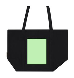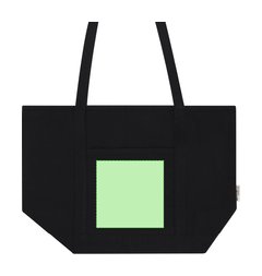 Bolsa confeccionada principalmente en resistente algodón reciclado de 300g/m2. De acabado cosido con fuelle y asas largas de 70cm reforzadas. Incluye bolsillo exterior de fácil acceso. Logotipo en etiqueta lateral y resistencia hasta 10kg de peso.