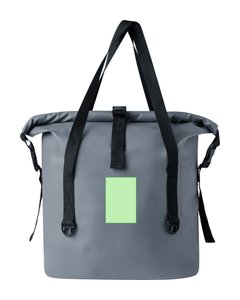 Bolso impermeable de 25L de capacidad, confeccionado en resistente PVC. Compartimento principal con triple cierre de hebilla, con asas para un cómodo transporte. En elegante color gris con detalles en negro y presentado en bolsa individual reciclada.
