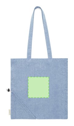 Bolsa plegable de línea nature, fabricada en algodón reciclado de 120g/m2. De acabado cosido y con asas largas reforzadas (70 x 2,5cm). Plegado de pequeño tamaño mediante cordón con accesorio de ajuste. Disponible en variada gama de colores, con distintivo algodón reciclado en etiqueta exterior. Resistencia hasta 6 kg de peso. Certificación GRS (Global Recycled Standard / Estándar de Reciclaje Global), que garantiza el origen reciclado del material usado para fabricar el producto