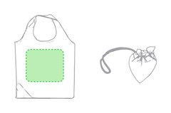 Bolsa plegable de divertidos diseños de frutas en llamativos colores. De suave poliéster 190T y con cordón a juego con accesorio de ajuste.