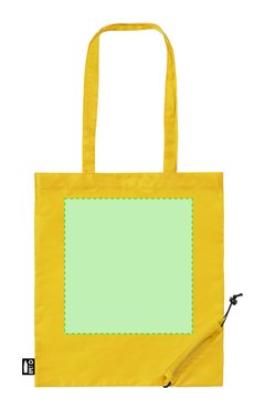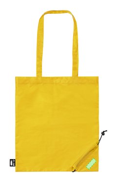 Bolsa plegable de línea nature fabricada en 190T RPET. De acabado cosido y con asas largas reforzadas (70 x 2,5cm). Plegado de pequeño tamaño mediante cordón con accesorio de ajuste. Disponible en variada gama de colores, con distintivo RPET en etiqueta exterior. Resistencia hasta 8 kg de peso. El material RPET se elabora a partir de plástico reciclado, para así fomentar la reutilización de residuos plásticos y ayudar a la sostenibilidad del planeta.