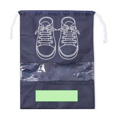 Bolsa portazapatos fabricada en non-woven. Práctica para guardar calzado, con serigrafía inspirada en zapatillas de cordones y práctica ventana transparente para visualizar el interior, con cierre de cordón. Disponible en variados colores diferentes y detalles en blanco.