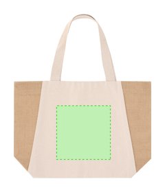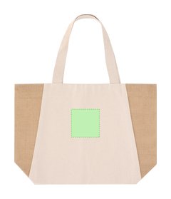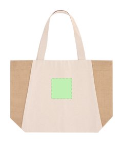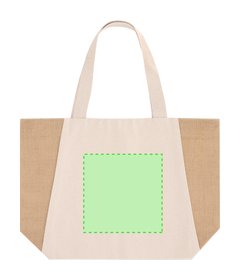 Bolsa confeccionada principalmente en algodón de 360 g/m2 y yute. Con asas de algodón largas reforzadas. Con fuelle en la base y resistencia hasta 8kg de peso.