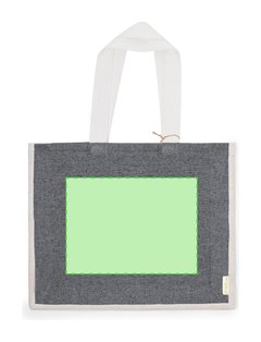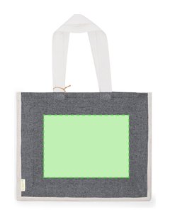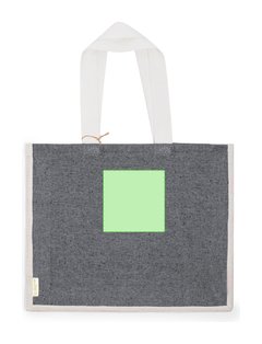 Bolsa en material 100% algodón reciclado de 140 g/m2 en combinación con el yute. Asas largas de 70cm con refuerzo, de acabado cosido y fuelle de yute. Logotipo en etiqueta lateral y resistencia hasta 8 kg de peso. Disponible en variada gama de colores nature con base de color natural.