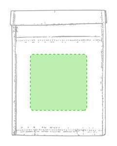 Bolsa térmica en papel resistente a la humedad de 85g/m2. Con interior isotermo acabado en aluminio, bolsillo exterior y cierre de velcro. 2,3 litros de capacidad.