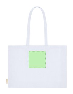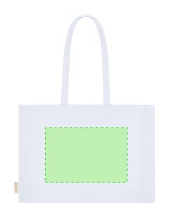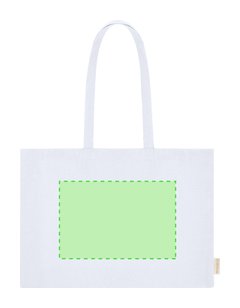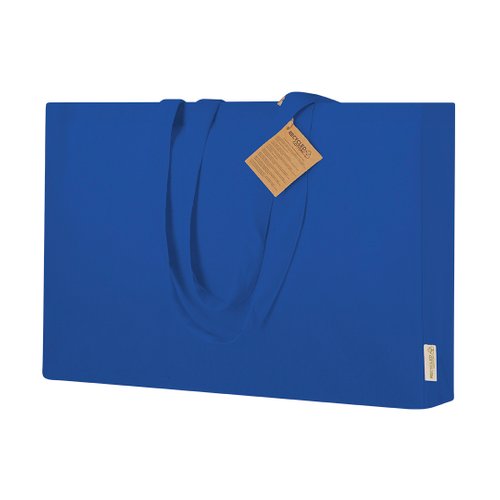 Bolsa con fuelle en base y laterales, confeccionada principalmente en algodón reciclado de 220g/m2. Cuenta con asas largas reforzadas de 70 x 2,5 cm. Incluye distintivo de Algodón Reciclado. Resistencia hasta 10 kg de peso.