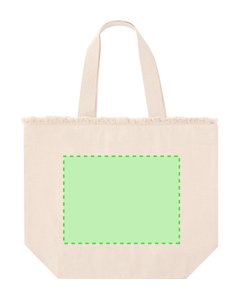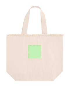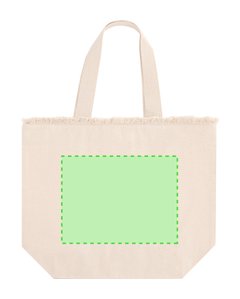 Bolsa con estilo flecos confeccionada principalmente en algodón de 320 g/m2. De práctico y moderno diseño, incorpora asas largas reforzadas. Incluye cierre de cremallera para mayor seguridad.
