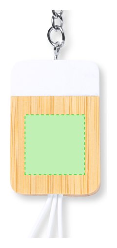 Cable cargador con llavero, fabricado en bambú y con detalle en extracto de mármol. Incluye conexiones de entrada USB y Tipo C, con salidas Lightning, Micro USB y Tipo C 5VDC 2.4A. Presentado en bolsa individual de diseño kraft.