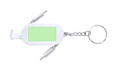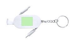 Cable Cargador llavero en ABS. Con soporte retráctil en la base para smartphone. Incluye dos entradas de tipo C para función de carga con potencia máxima 60W.