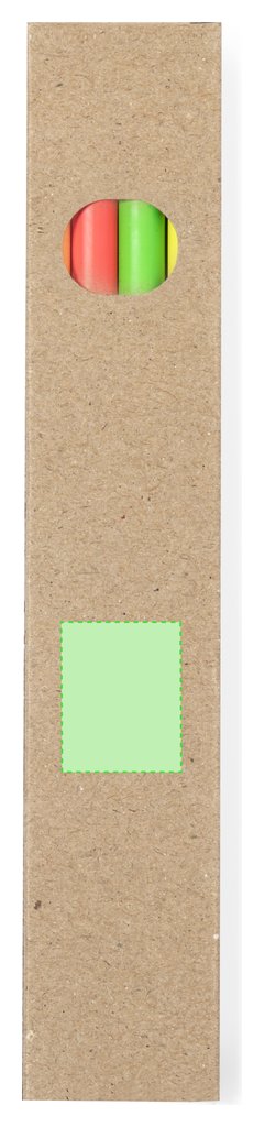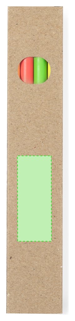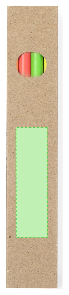 Set de 4 lápices en caja de cartón reciclada con ventana. Lápices de madera con cuerpo cilíndrico en variados colores fluor y minas en divertidos colores.