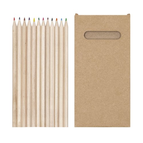 Caja de 12 lápices en caja de cartón reciclada con ventana. Lápices de madera con cuerpo hexagonal con minas en divertidos colores.