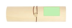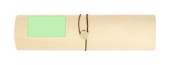 Elegante caja de presentación fabricada en madera. Forma cilíndrica con tapadera de suave madera y cierre de cuerda en polipiel. Presentado en caja de diseño kraft.
