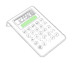 Calculadora de 8 dígitos en original diseño bicolor de vivos colores y con suaves teclas transparentes. Pila de botón incluida con film protector y presentada en caja individual.