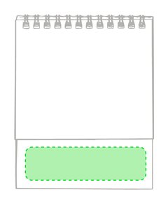 Calendario de sobremesa de anillas con cuerpo triangular en cartón. Diseño mes en curso/mes anterior/mes siguiente y santoral. Amplia superficie de marcaje en ambas caras.