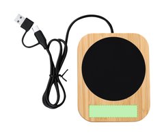 Calentador de tazas, fabricado con cuerpode bambú. Ideal para mantener las bebidas a la temperatura ideal. Incluye un cable de carga de 1 metro con doble conexión Tipo-C y USB, adaptable a diferentes dispositivos.Materiales como el Bambú fomentan la utilización de materias primas naturales reduciendo las emisiones contaminantes. Además, el bambú proviene de una planta de gran resistencia y versatilidad, con crecimiento y regeneración rápida, siendo una excelente alternativa al uso de madera tradicional.
