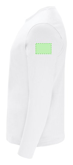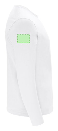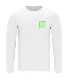 Camiseta de manga larga para adulto en color blanco de suave y agradable tacto en 100% algodón, punto liso de 160 g/m2. Confeccionada en tejido tubular, con cuello redondo acanalado 1x1 y con cubrecosturas reforzado a juego en color blanco.