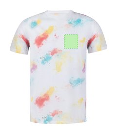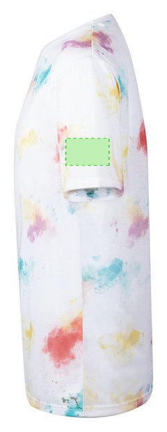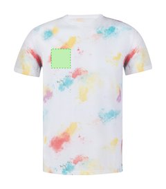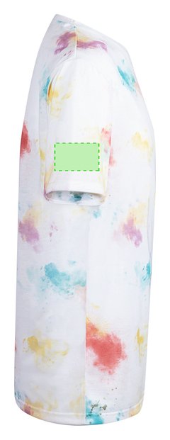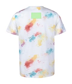Camiseta para adulto en material 100% poliéster transpirable de 160g/m2 con textura de algodón. Con cuello redondo y atrevido diseño con estampados inspirado en una paleta de pinturas. Disponible en tallas S, M, L, XL, XXL.