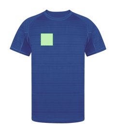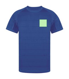 Camiseta técnica unisex con original diseño a rayas, en combinación con tejido transpirable microperforado en axilas y laterales. Confeccionada en suave material 100% poliéster de 135g/m2, siendo una camiseta muy cómoda, ligera y transpirable; ideal para la práctica de deporte y también como prenda de uso diario. De corte moderno, manga ranglán y cuello redondo, con doble costura en dobladillo y mangas de doble tejido para una mayor durabilidad y resistencia al uso intensivo. Disponible en tallas XS, S, M, L, XL y XXL.