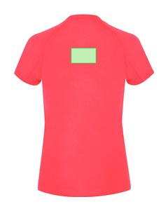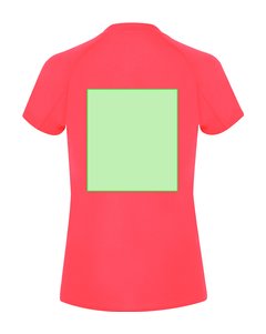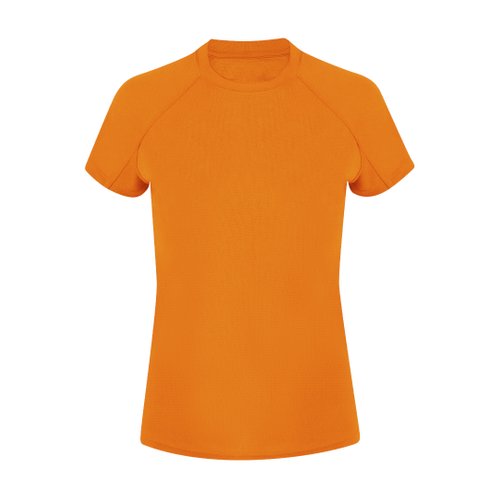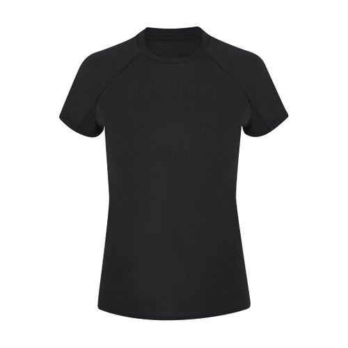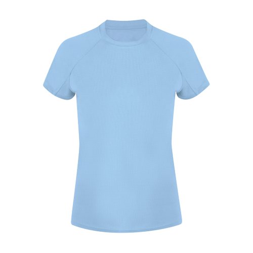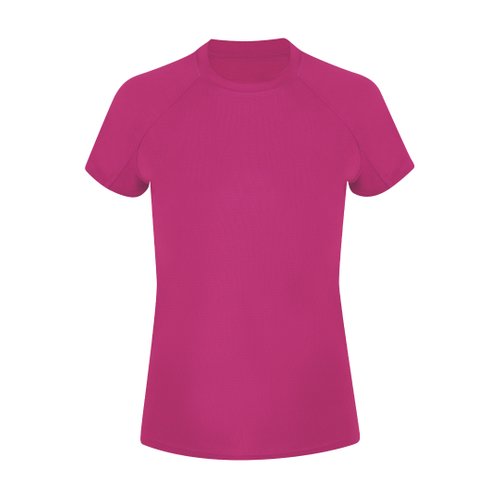 Camiseta técnica de manga corta ranglán, con fit femenino, confeccionada en tejido 100% poliéster waffle interlock , incorpora tecnología Cool Dry, que favorece la transpiración y el secado rápido. Diseño con mangas ranglán y costuras overlock en sisa y mangas. Cuello y cubrecosturas a tono.