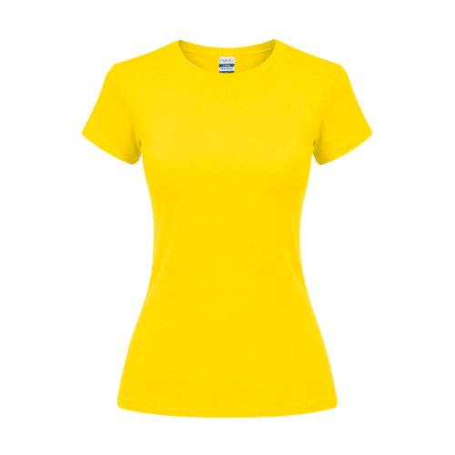 Camiseta de manga corta, con fit femenino, confeccionada en suave 100% algodón punto liso 150 g/m2. Con costuras laterales. Cuello redondo en canalé 1x1 y cubrecosturas a tono.Una prenda versátil y EPIKA, que ofrece calidad-precio.