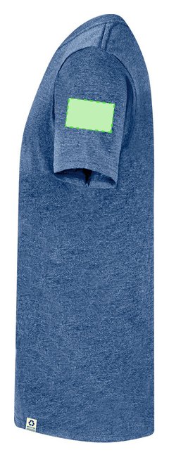Camiseta para niño fabricada en material 60% algodón reciclado en combinación con RPET, tejido Single Jersey de 150g/m2. Disponible en variada gama de colores, con logotipo reciclado en etiqueta y en tallas 4-5, 6-8, 10-12. El material RPET se elabora a partir de plástico reciclado, para así fomentar la reutilización de residuos plásticos y ayudar a la sostenibilidad del planeta.
