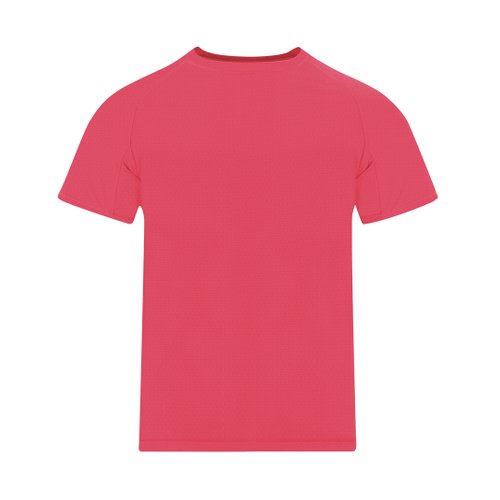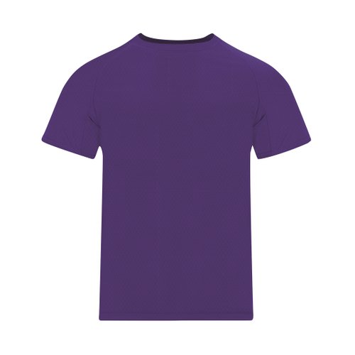 Camiseta técnica infantil de manga corta ranglán, confeccionada en tejido 100% poliéster waffle interlock, incorpora tecnología Cool Dry, que favorece la transpiración y el secado rápido. Diseño con mangas ranglán y costuras overlock en sisa y mangas. Cuello y cubrecosturas a tono.
