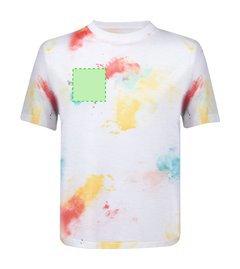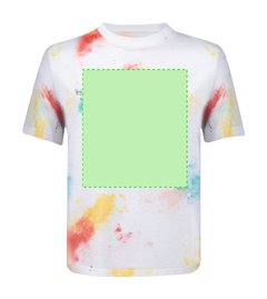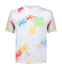 Camiseta para niño en material 100% poliéster transpirable de 160g/m2 con textura de algodón. Con cuello redondo y atrevido diseño con estampados inspirado en una paleta de pinturas. Disponible en tallas 4-5, 6-8, 10-12.