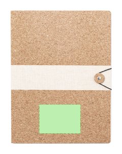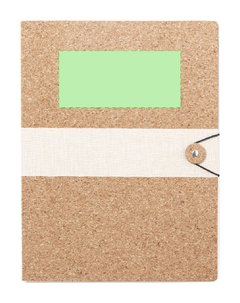 Carpeta de línea nature con exterior en corcho natural y banda central de lino en acabado crudo. Cierre elástico.