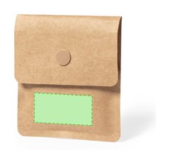 Cenicero de bolsillo de línea nature, con exterior en papel reciclado laminado e interior en aluminio ignífugo. Solapa con cierre de corchete a juego.