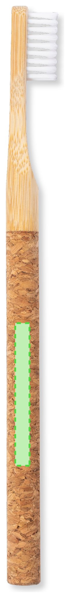 Cepillo de dientes de línea nature. Con mango en corcho natural y cuerpo en bambú, fomentando la utilización de materias primas naturales y sostenibles.