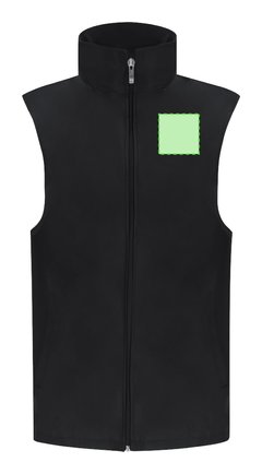 Chaleco Unisex de tejido ligero y transpirable con interior confeccionado en tejido de malla blanco. Cremallera frontal a tono y tirador plateado, con un bolsillo exterior en cada lateral.